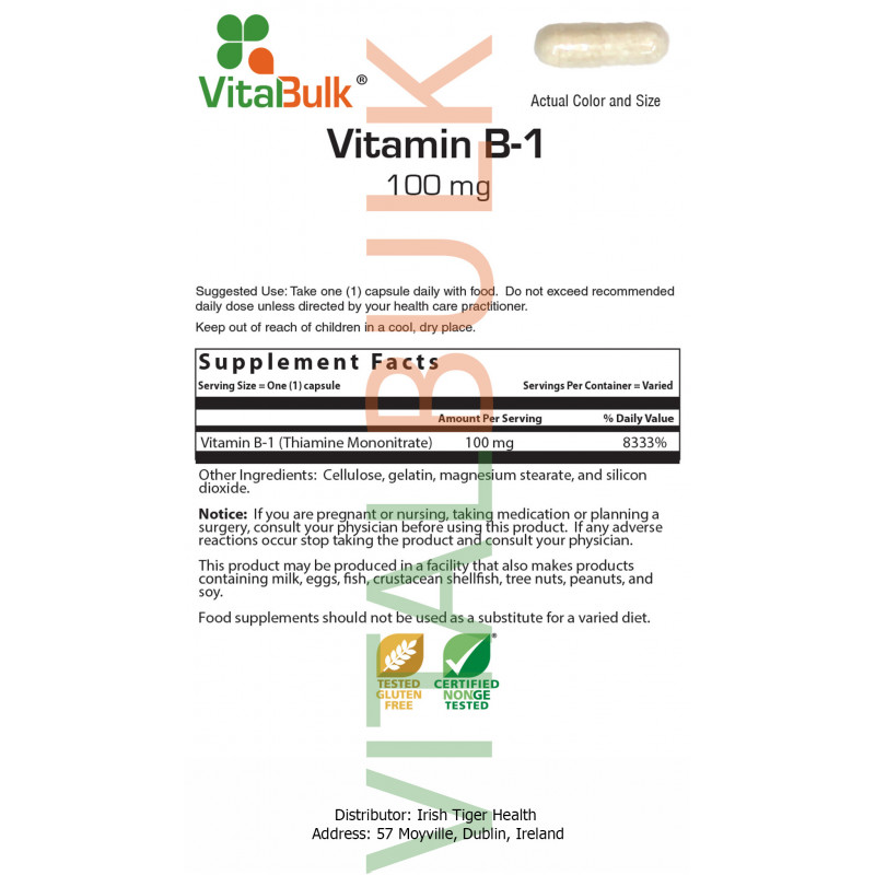 | Vitamin B-1 (Thiamine Mononitrate) | 100 mg | 8333% |