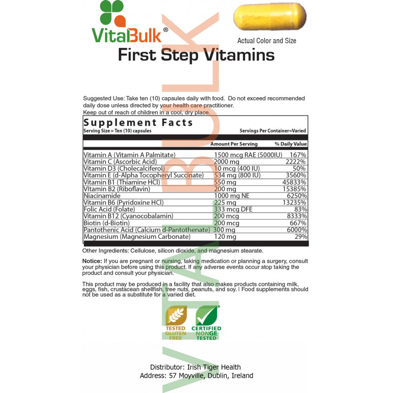 Остальные ингредиенты: Кальций (как Кальций D-Пантотенат, Дикальциум фосфат), целюллоза, диоксид силикона, магнезия стеарат.