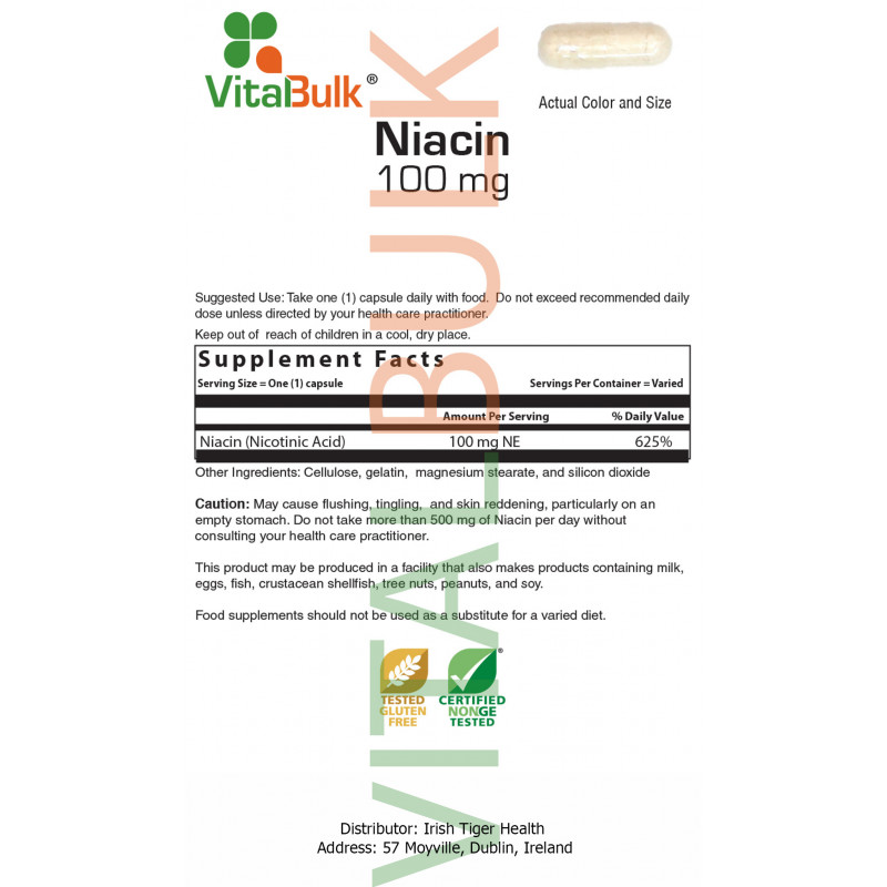 Внимание: Может вызвать гиперемию, покалывание, и покраснение кожи, особенно на пустой желудок. Не принимайте более 500 мг ниацина в день без консультации врача.